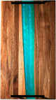 Celeste Blue Resin & Acacia Wood Serving Tray – Modern 12x16 Inch Tray for Serving Food, Breakfast in Bed, Coffee Table Decor, Snacks, Patio, and Organization
